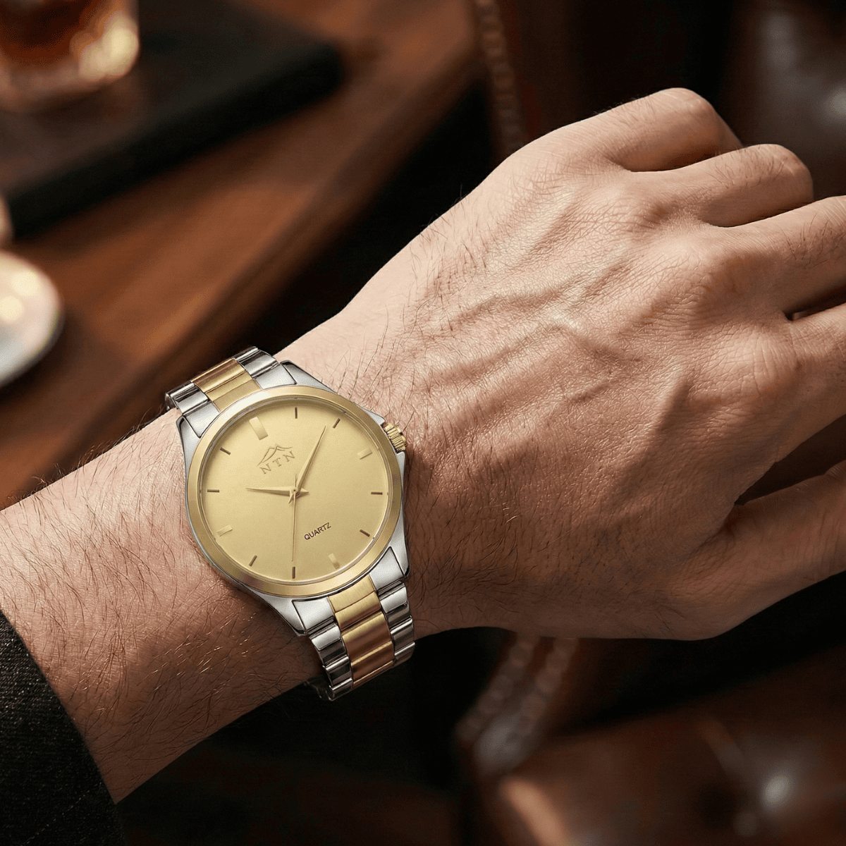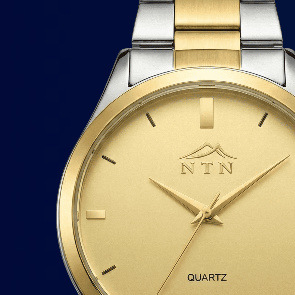 This golden-dial Quartz Watch from NTN blends timeless elegance with everyday durability. The dual-tone steel strap and precise Japanese Movement make it a refined essential for any occasion.