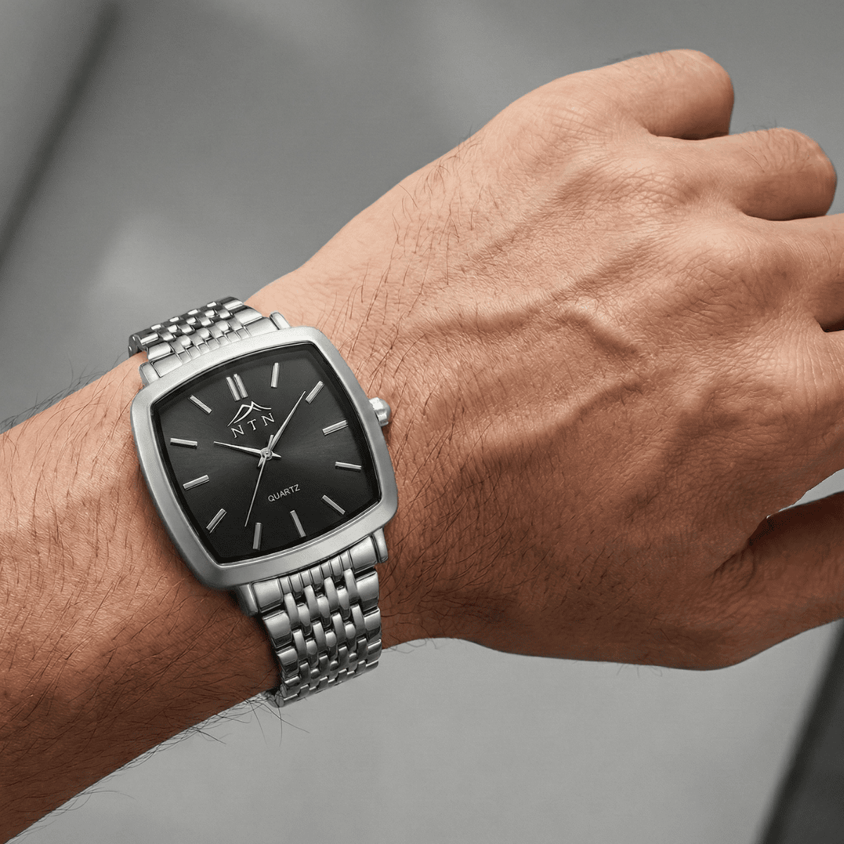 NTN presents a sleek Quartz timepiece that blends minimalist design with dependable performance. The bold black dial contrasts beautifully with the lustrous steel strap, offering a modern and versatile look for any occasion. Powered by Japanese Movement, it delivers unmatched accuracy and durability. Designed for those who value refineMent and practicality, this NTN Watch is perfect for both everyday wear and special moMents.