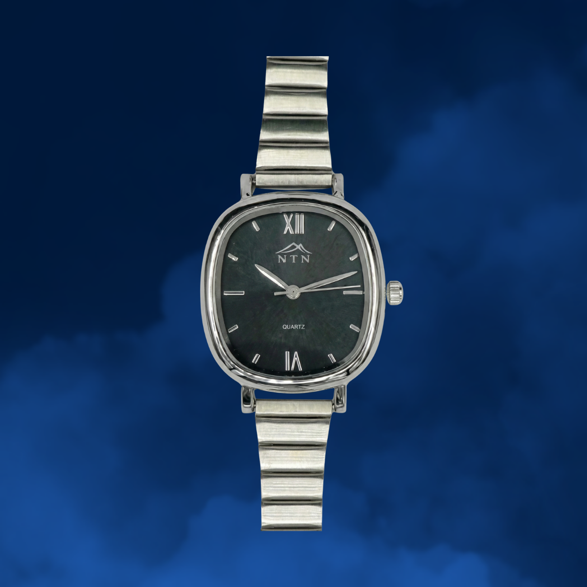 This NTN Analog watch pairs a soft‑rounded fine-alloy case with a matte black dial that highlights restrained Roman markers for a modern, refined look. Powered by a precise quartz movement, its slim profile and flexible stainless-steel bracelet deliver everyday comfort without sacrificing style. This versatile timepiece moves effortlessly from office hours to evening plans with reliable performance and clean aesthetics.