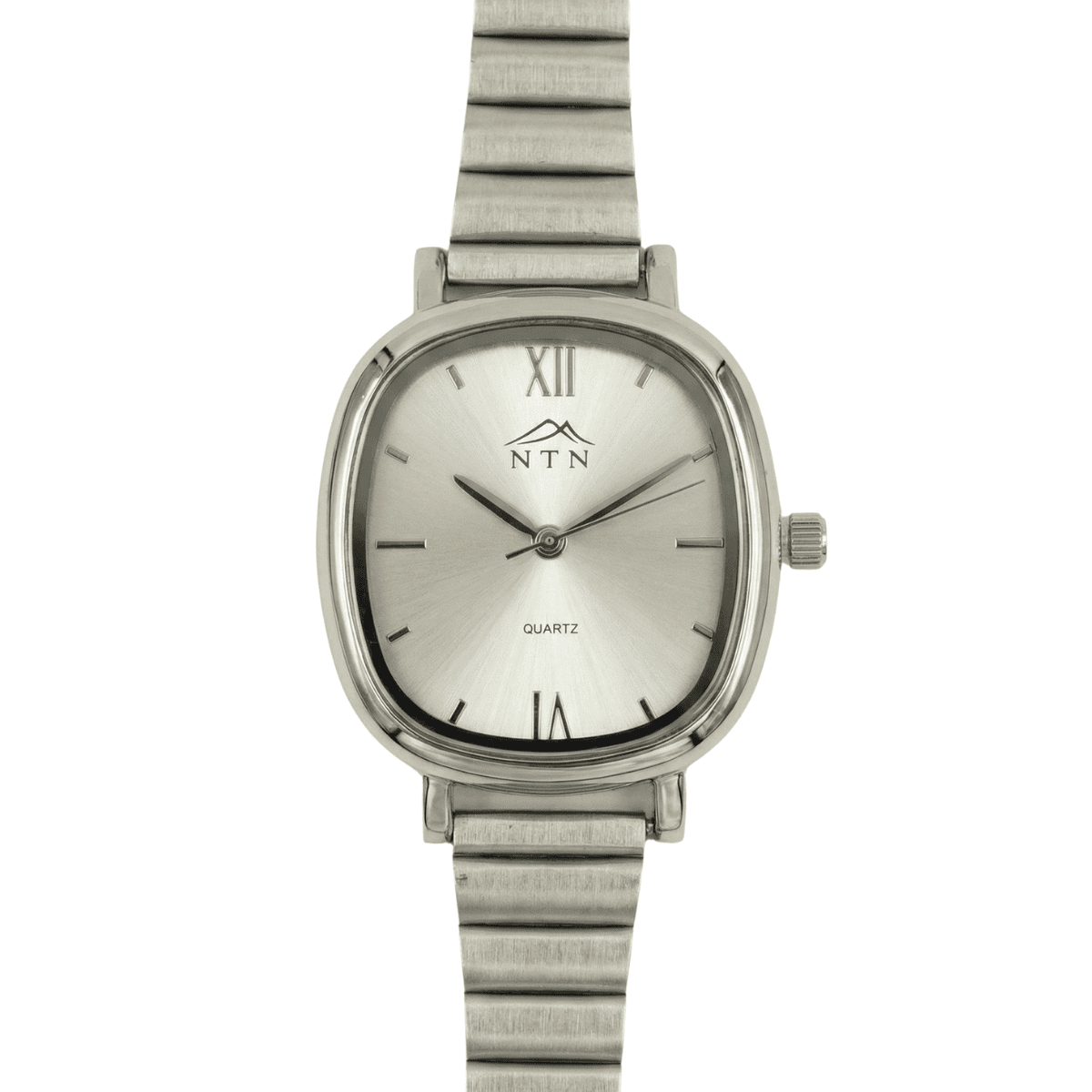 The NTN graceful cushion Analog watch pairs a soft, rounded case with a radiant white sunray dial for a chic, feminine silhouette. Minimalist hour markers and tapered hands keep the design refined, while a comfortable stainless‑steel strap makes wear effortless. Driven by a reliable quartz movement, this versatile piece slips seamlessly from daytime meetings to evening plans.
