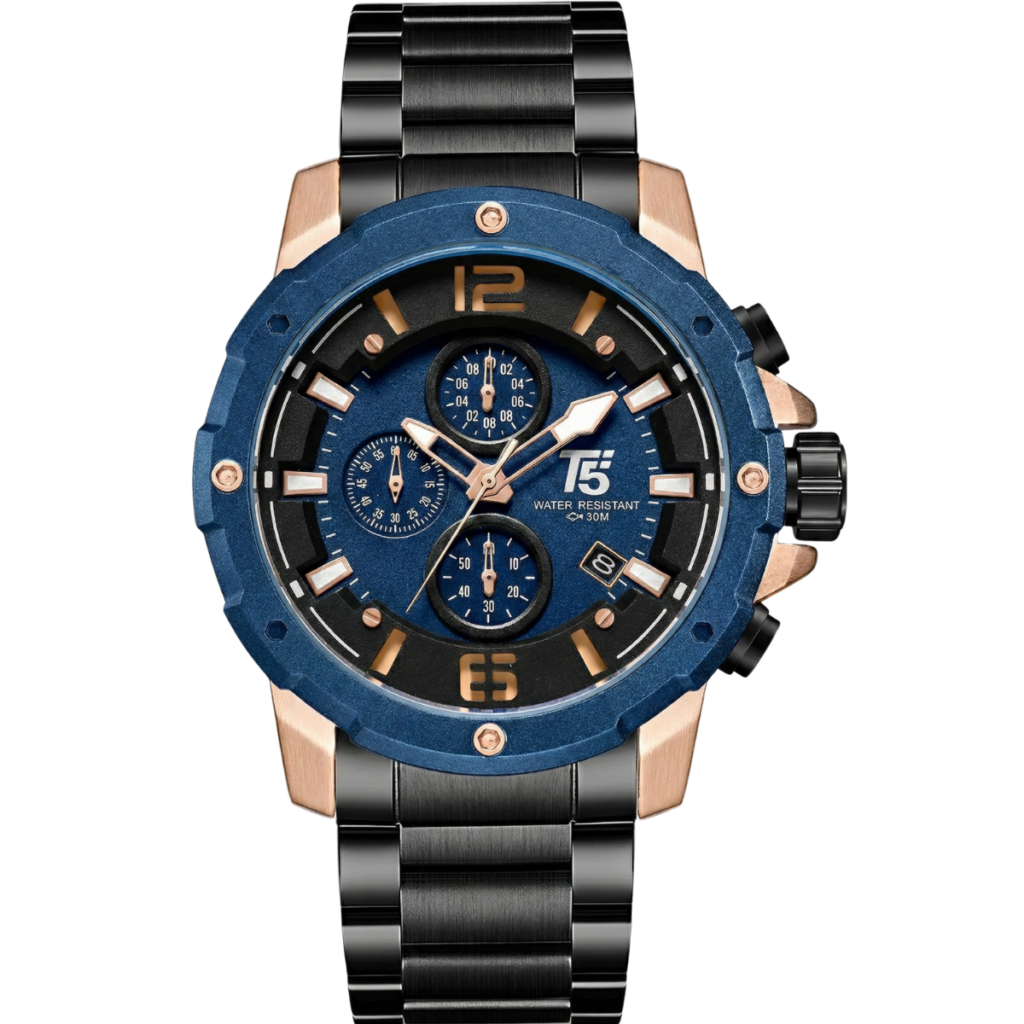 T5- Black Dial Metal Strap chronograph Watch for Men H3815GC