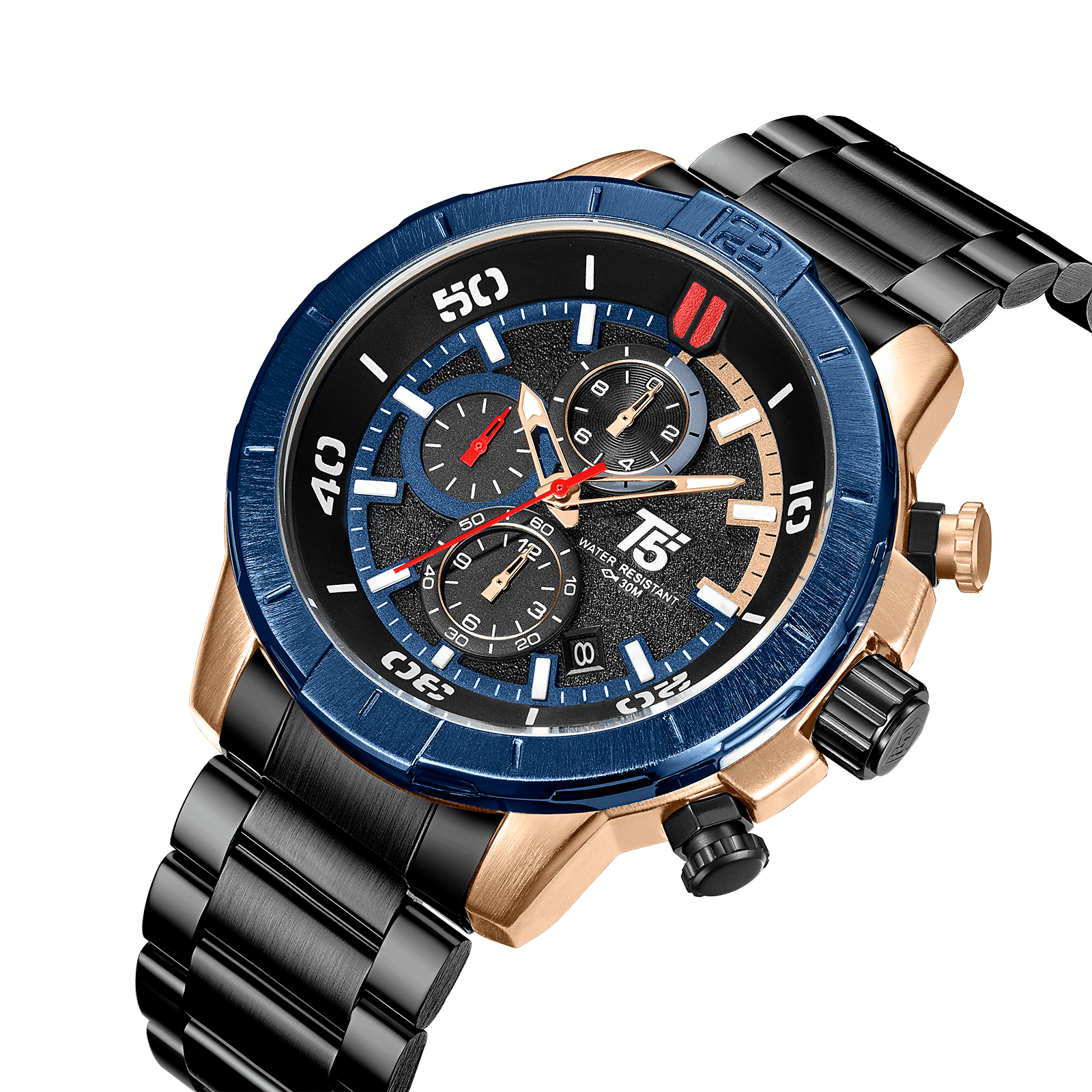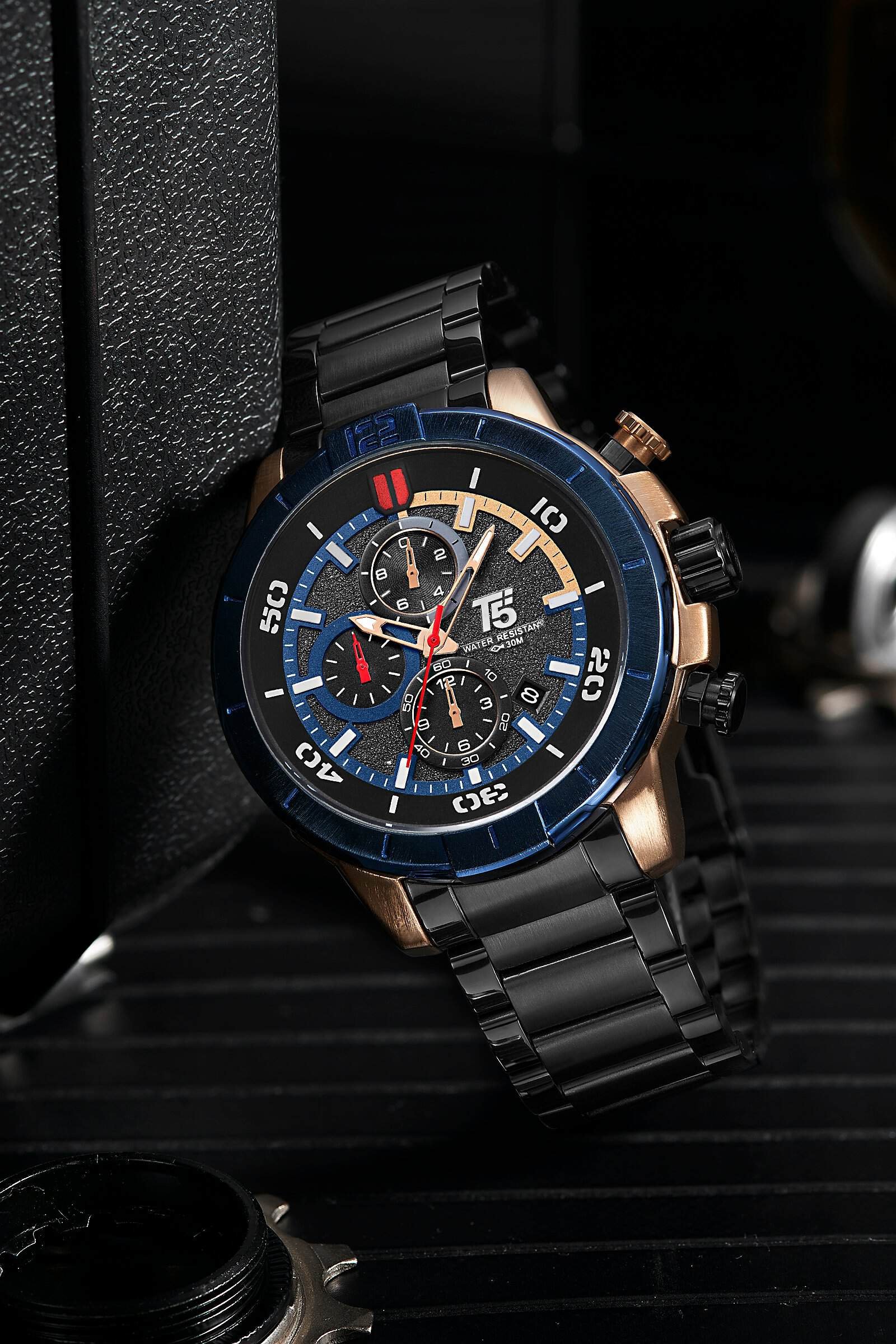 T5- Blue Dial Metal Strap chronograph Watch for Men H3783GC